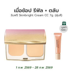 แป้งผสมรองพื้นเนื้อเบาสบายผิว เติมระหว่างวันได้โดยไม่ทำให้ดูหนา มอบผิวสวยกระจ่างใสตลอดวัน *จำหน่ายแยกกับ ตลับเปล่าพร้อมฟองน้ำ